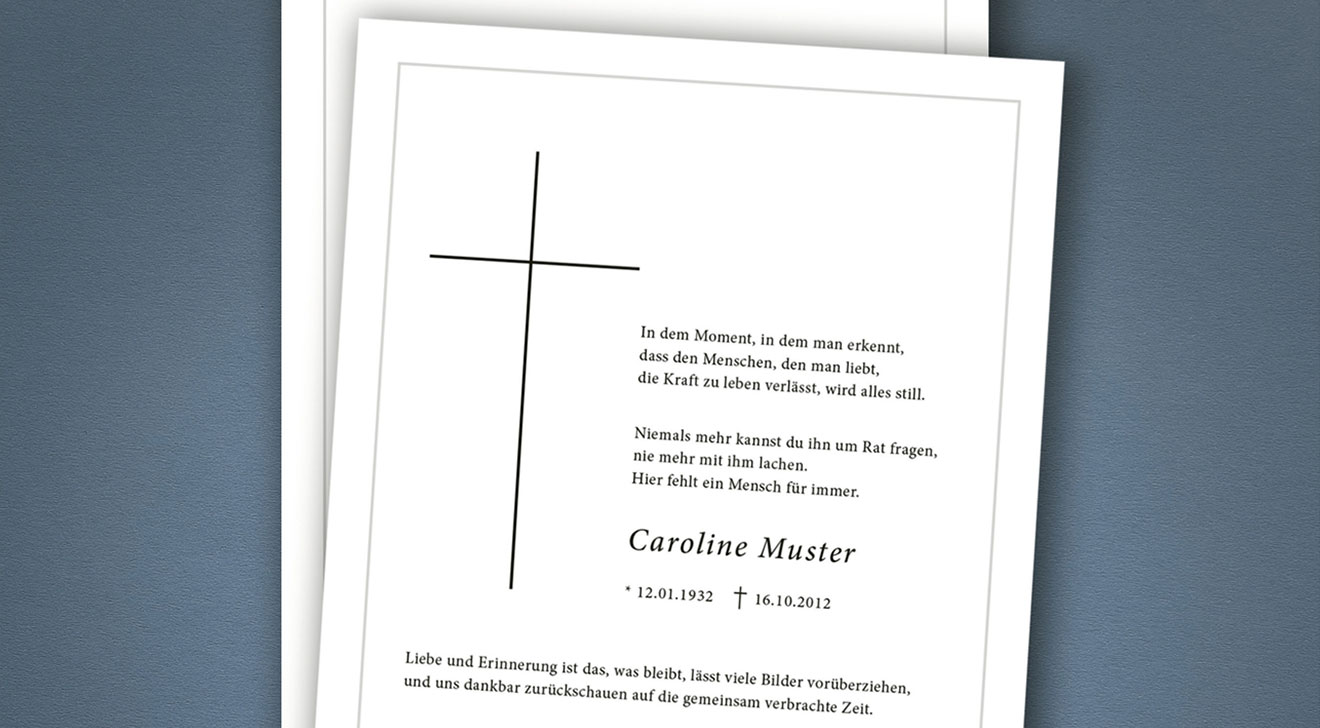 Eine persönlich formulierte Trauerkarte ist eine schöne Geste der Würdigung gegenüber dem Verstorbenen und zugleich ein in Wort gefasstes Gefühl des Trostes für die Trauergemeinde.